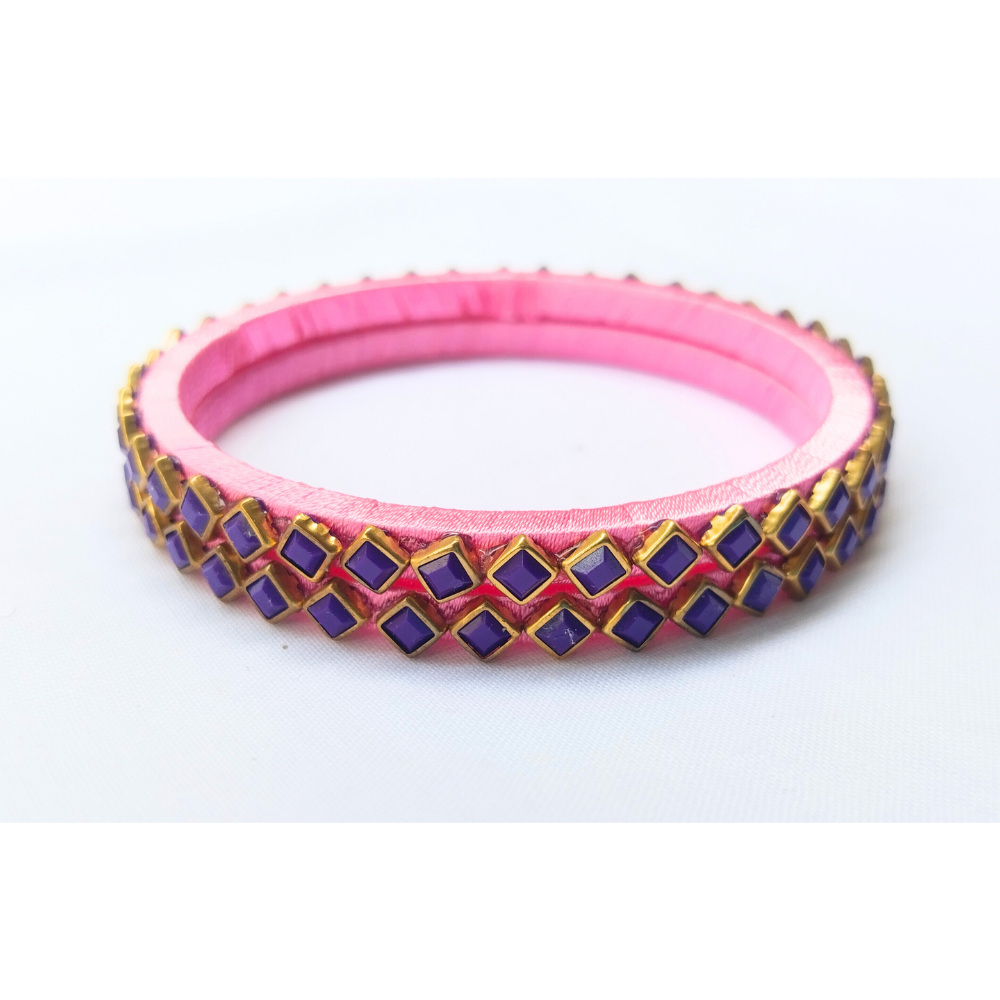 Pink Diamond Stone Bangles | Handmade Chic Jewellery (Pair)
